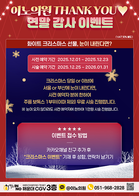 작성자 이노의원 작성일25-11-28 17:32 조회17회 댓글0건 기간2025-12-01 ~2026-01-31